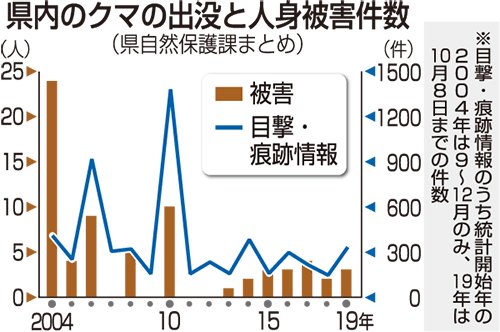※クマ出没や人身被害の多発を受けて、2019年10月の朝刊連載「実践 クマから身を守れ」を公開しました。記事中の人名、肩書き、日付、地名などは当時のものです。
