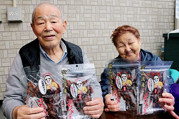 昭夫さんが考えた新商品は素干しだけではない。ホタルイカだけでもワイン漬け、みそ漬け、キムチ、ホタルイカご飯、甘露煮などなど。変幻自在だ。この他、ブリの「あんにゃなます」(魚津市の郷土料理)もヒットし、全国ネットのテレビ番組の取材も受けた。