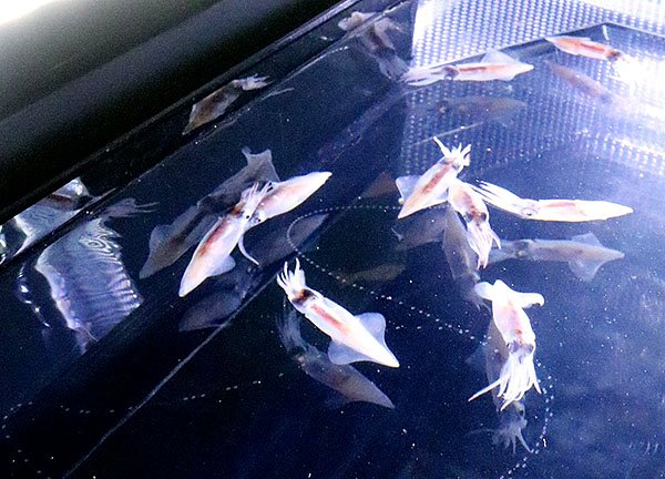 生きたホタルイカ。富山湾では3月に漁が解禁となる(魚津水族館で撮影)