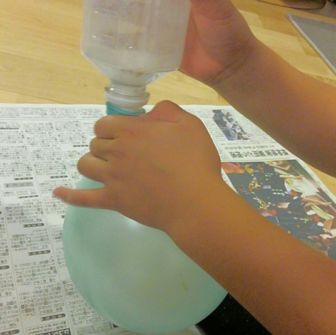 小麦粉が風船に入っていくのが意外と楽しいです。