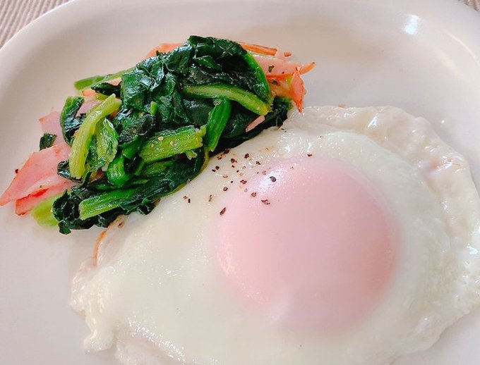 朝の副菜の一品に、ほうれん草とハムのガーリックソテーをご紹介いたします。