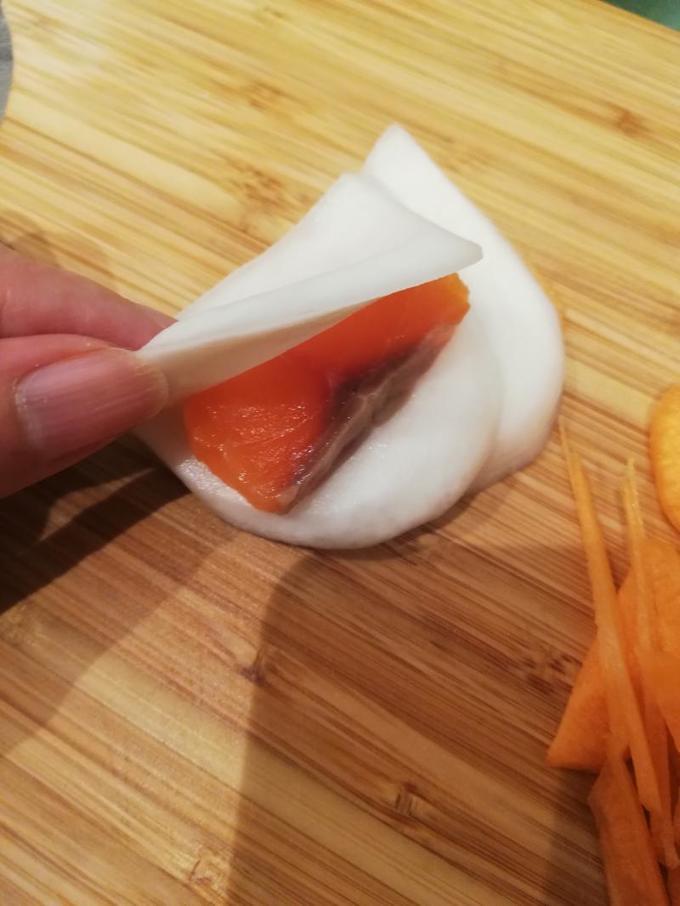 カブの間にサーモンを挟んだモノの上に麹を重ねて 重石をします。