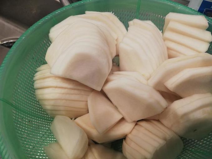 漬け樽の代わりにお鍋を使い、重石はペットボトル。水の量で重さも調整できるので便利〜(笑)