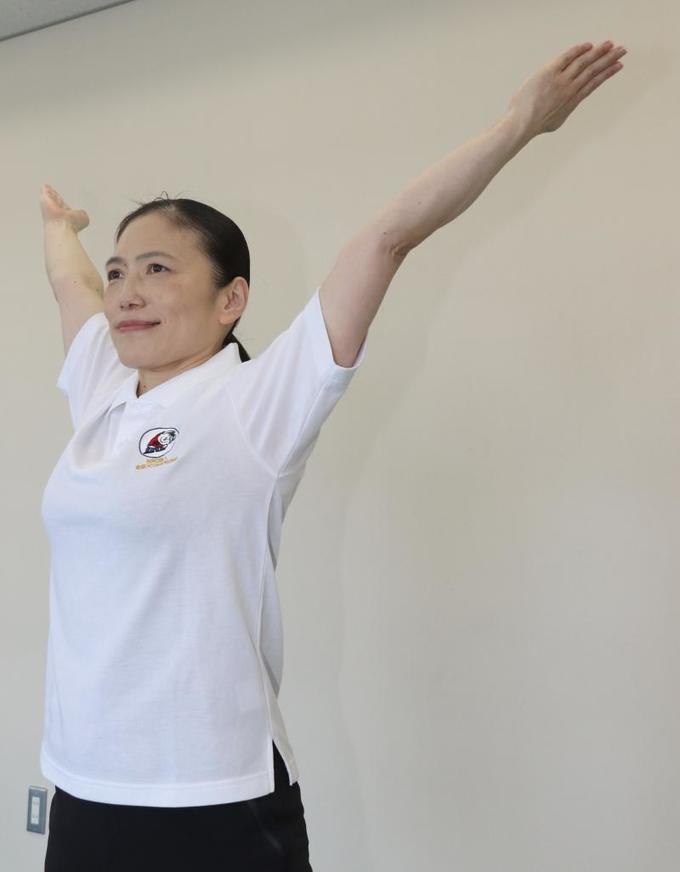 田中裕子(たなか・ゆうこ) 富山市在住、日本体育大体育学科卒、県内で初めて全国ラジオ体操連盟の認定を受けた1級ラジオ体操指導士。小中学校や地域で「ラジオ体操・みんなの体操」の普及に取り組むほか、富山市民大学での「リズム体操」など、幼児からお年寄りまで健康づくりのための運動指導に幅広く取り組んでいる。