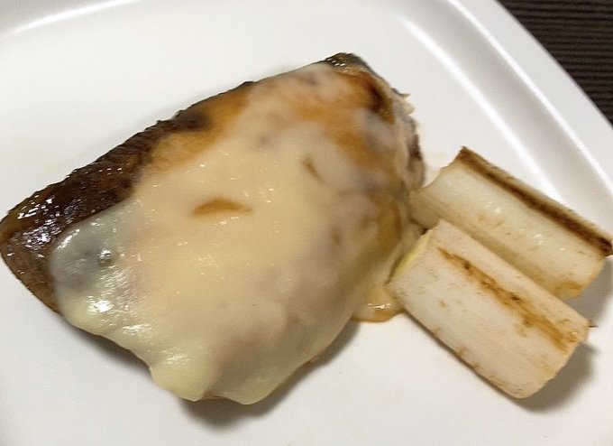 - 2のブリに1のみそだれをかけ絡ませながら、ピザ用チーズを上にのせます。