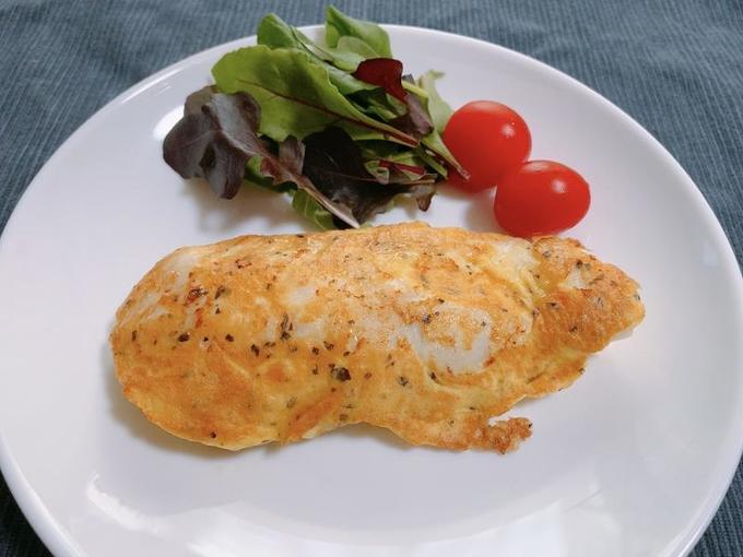 一つのメニューでタラの切り身、卵、粉チーズとタンパク質の材料を三つをとることができます。