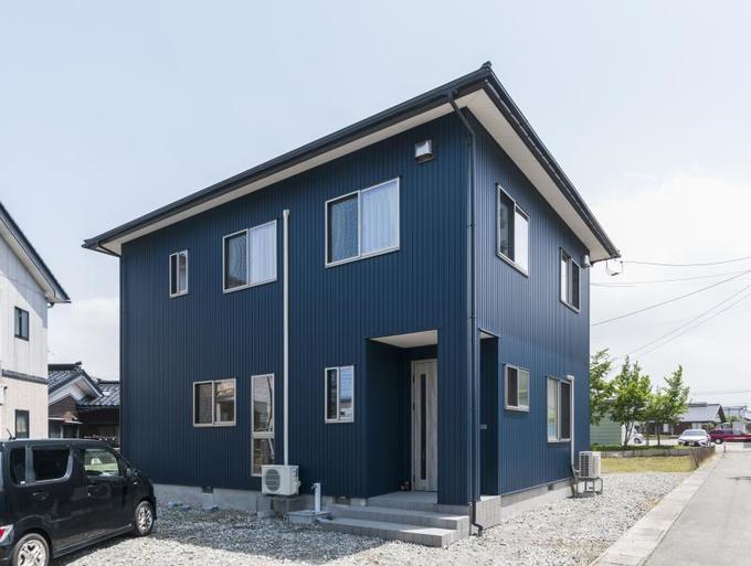 Kさん一家は、ご夫婦と11歳(長男)、10歳(長女)、8歳(次男)、 7歳(次女)の6人家族。気品漂う群青色のマイホームは 総2階建で、コンパクトながらゆとりある室内空間を実現した。