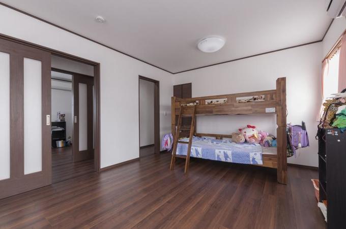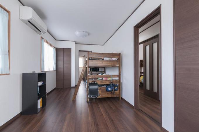 子ども部屋となる洋室は現状男の子2人、女の子2人に1部屋ずつの間取り。将来区切って四つの部屋にできるよう、採光や採風に考慮した窓やクローゼットの位置に設計の妙がさえる。この家が元気でにぎやかな家庭の成長を支えている。