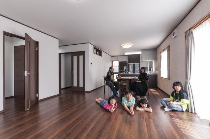 LDKは24畳のワンフロアで、生活の中心。「遊んだり、勉強したりしている子どもたちの様子を見ながら家事をできる点が気に入っています」と奥さまは満足げに話す。