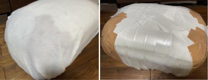 隙間に、クッションの布カバーや余ったタオルを埋めました。