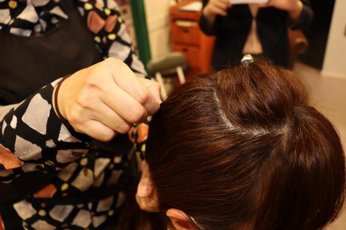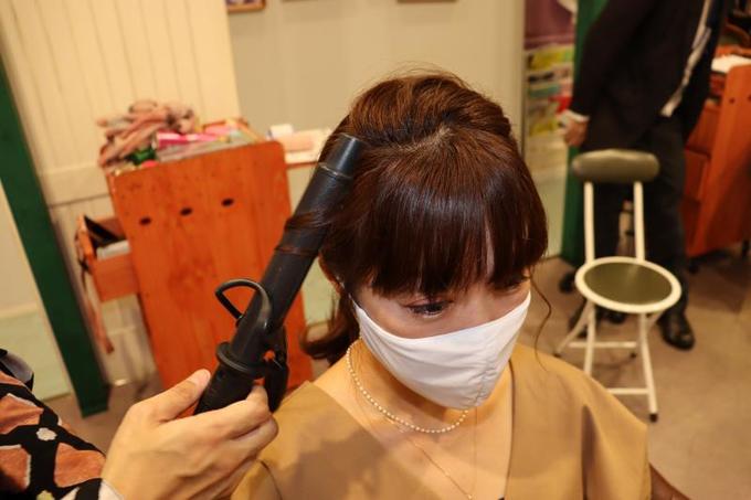 幸田さんは「頭のトップ部分にボリュームを出して山形にすると、顔が小さく見えます」と説明します。