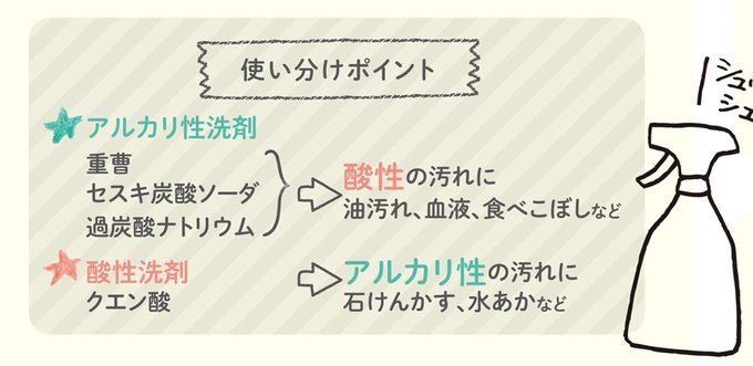 使い分けのポイントは、洗剤と汚れそれぞれが酸性かアルカリ性かを知ることから。