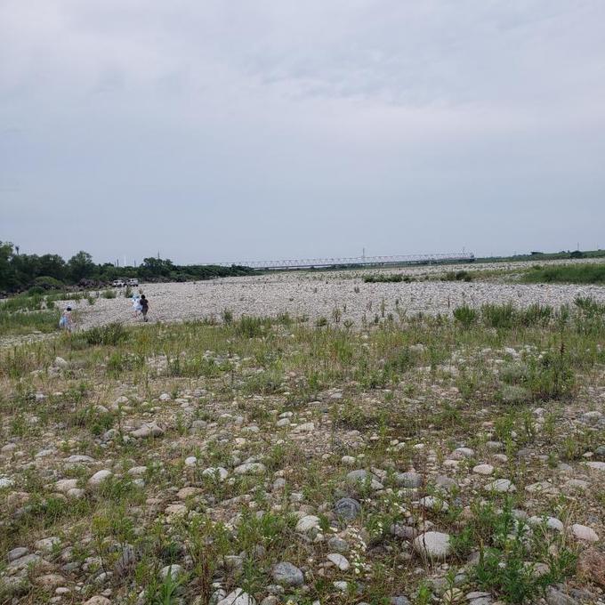 教えてもらったスポットへ河川敷の岩がごつごつした道を少し迷いながら車で進むと開けた場所に出ました。 他にも車が数台止まっています。 そこからは徒歩で少し進むと本流から少し離れて流れの穏やかな場所がありました。
