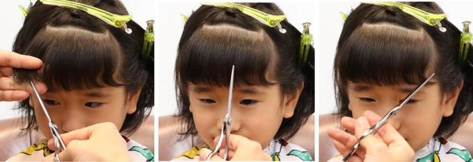 「左右の黒目の内側からまっすぐ上に線を引いたとき、その間に生えている毛を前髪とするのが今のトレンドです。子どもの場合は、もう少し幅広でもかわいいですが、こめかみの周りまで切らないように注意してください」(幸田さん)