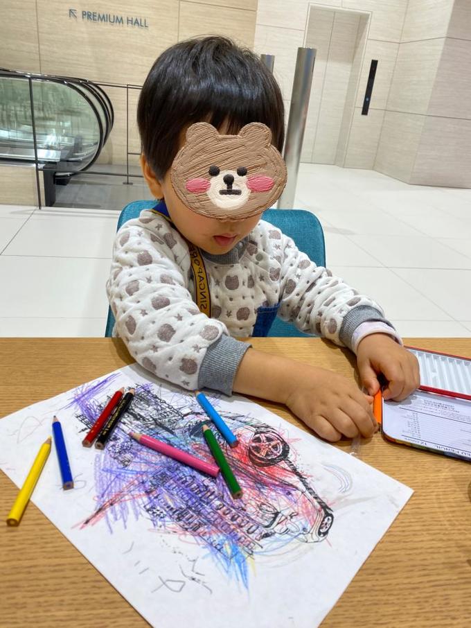 ちなみに、子供には塗り絵と色鉛筆を用意してくださって、息子は車の塗り絵を楽しんでいました🥳子連れには嬉しいサービスですね✨