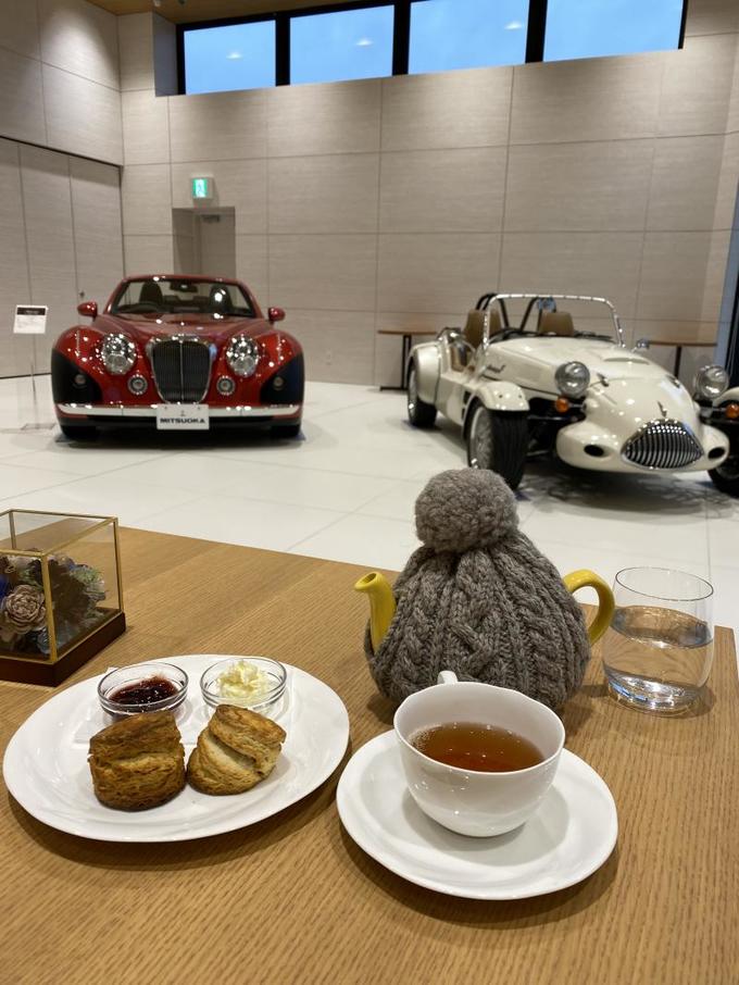 光岡自動車のこだわりの車を眺めながらお茶ができます♬