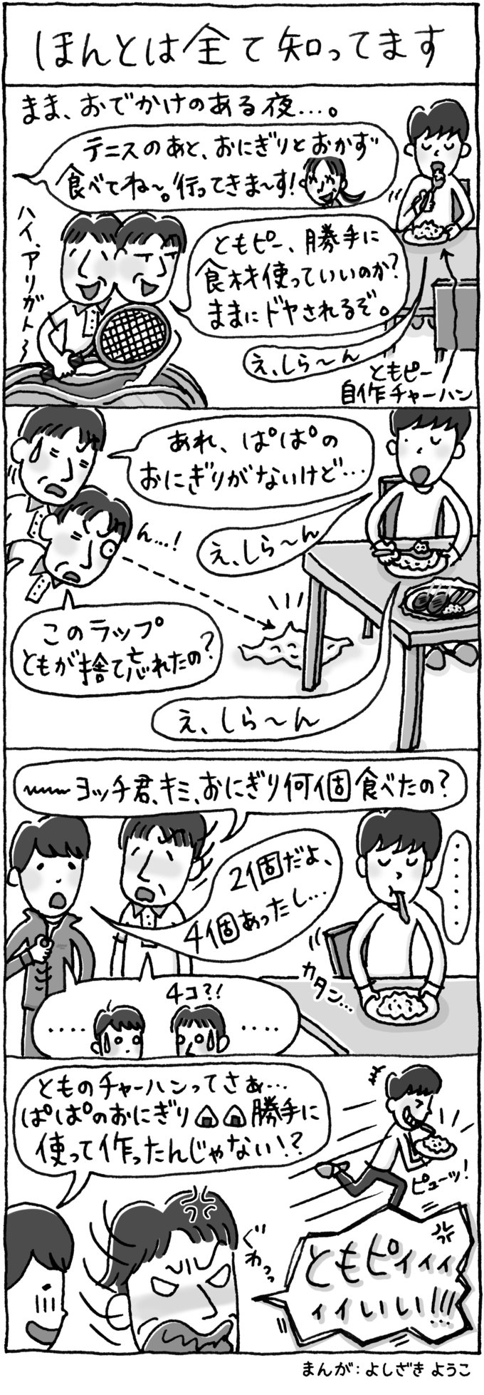 ヨッチ「…あのさ、ともが食べてるチャーハンってさぁ…、お に ぎ り 2 個 、 勝 手 に 使 っ て
