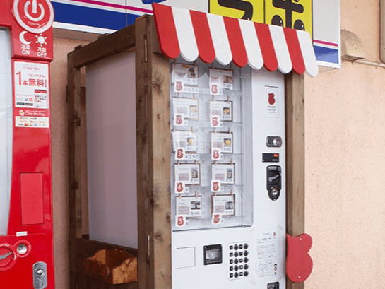 木のフレームや屋根が付く、小さなお店のような自販機。日曜限定の洋菓子店を営む酒井真子さんが「2号店」と思いを込めて運営する。国産小麦粉やてんさい糖など、体に優しい食材を使った無添加のおやつを10種類提供。人気のシフォンケーキはしっとりふわふわで、優しい甘みに心癒やされる。昔ながらの硬めのプリンもチェックしてみて。