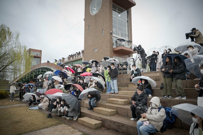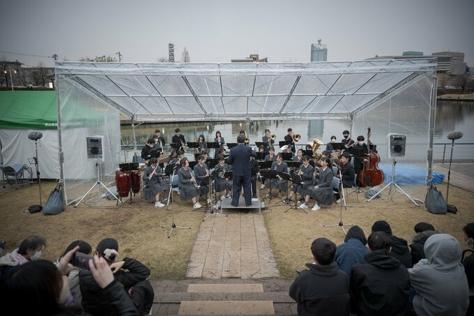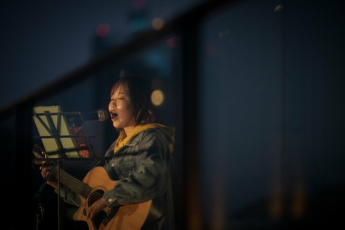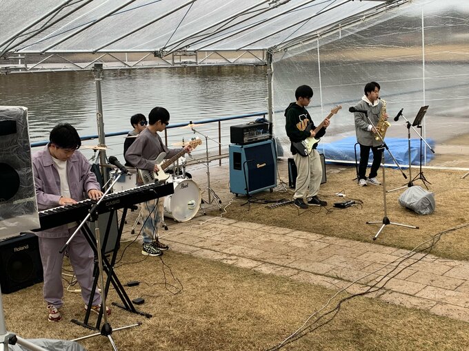 「卒業生のみなさん、おめでとうございます!」。肌寒さを吹き飛ばすようなあずちかさんの元気な言葉から始まったステージは、オリジナル曲を含む5曲を披露。あずちかさんは自身の妹が今春高校を卒業したことなどを紹介し、「進学する人、就職する人…。みんなで楽しもう」などと呼び掛けた。ラストの「旅立ちの日に」は、集まった若者たちと一緒に歌い上げ、会場一体となったステージを繰り広げた。