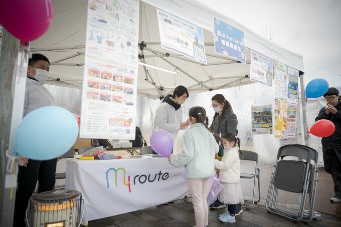 会場には、交通系スマホアプリ「my route(マイルート)」の普及に向けた富山マイルート推進協議会のPRコーナーも設けられた。