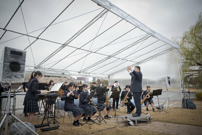 バンド、吹奏楽、ダンス、応援−。ステージでは、高校生8グループがエネルギッシュなパフォーマンスを繰り広げ、卒業する高校生たちにエールを送った。