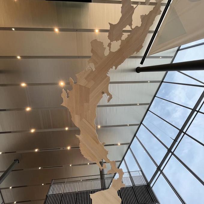 富山県が日本の中心!とバランスが物語っている模型も天井から下がっています♪
