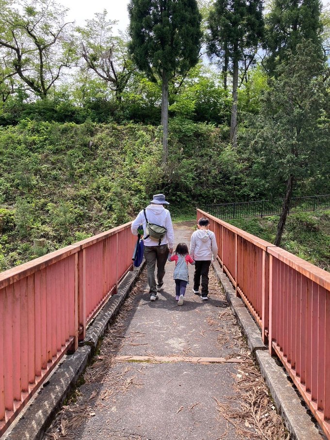 広い公園なので、駐車場もいくつかあり、私たちは入口から少し離れた場所にある第3駐車に停めました。5分ほどの距離ですが、少し山の中を通って行く道になっていました。橋を渡るのですが、子どもたちは「すごいね」「高いね」と言いながら、楽しそうに歩いていました。ちょっと遠回りして行くのもいいなと思いました。