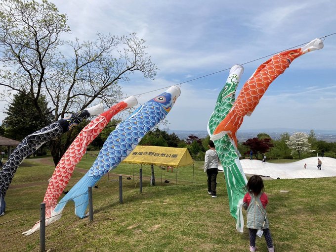 子どもの日が近いので、こいのぼりもありました。娘は一年中「ぼり(こいのぼりのこと)はどこ?」と聞くくらい好きなので、風にのってそよそよ泳ぐこいのぼりに歓声を上げていました。