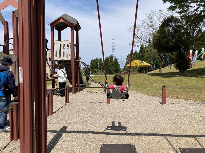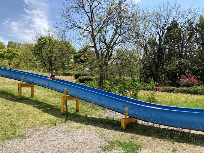 有料の公園ですが、ふわふわドーム以外にも、ローラー滑り台、複合遊具など楽しい施設がたくさんありました。高台にあるので、海も山も見えました。埼玉に長く住んでいた私は、海あり山ありの景色に感動!!