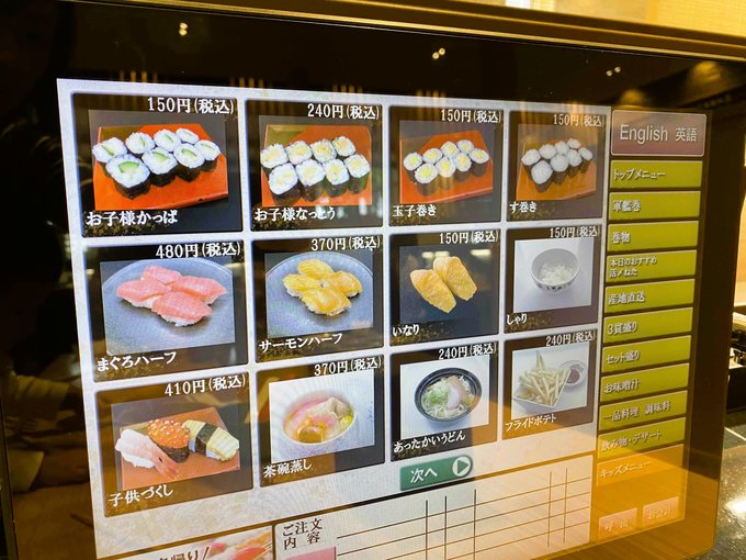 かっぱ巻きや納豆巻きは、短くカットされた子供用のものがあったり、「す巻き」という具が入っていない巻物があったり、まぐろハーフやサーモンハーフというシャリもネタも半分のサイズで食べやすいメニューがあったり、シャリだけを頼むこともできます。