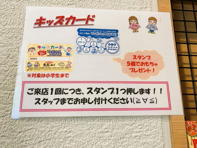 ⑤キッズカードがある。