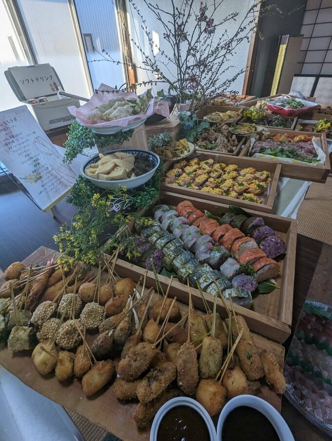 料理教室に参加した方からのご縁で、パーティーシーンなどのケータリング料理の依頼が増えていきました。栄養バランスや味の美味しさももちろん大切ですが、まずは見た目で「美味しい!」と思ってもらえるような盛り付けや魅せ方を意識しています。テーブルに並んだ料理が、コミュニケーションのきっかけにもなってもらえたら嬉しいですね。提供する場や食べてくれる人の笑顔を思い浮かべながら、メニューを考えて調理しています。