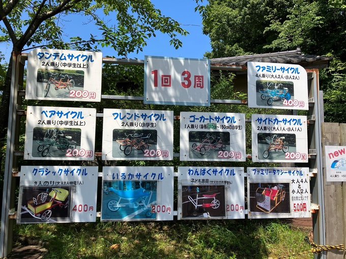 2〜6人乗りの自転車があり、コース内をサイクリングできます。
