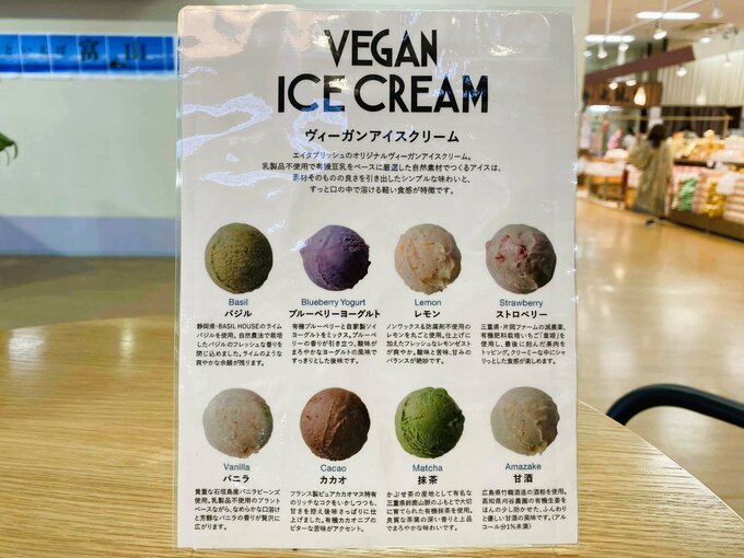 バニラ、カカオ、抹茶、甘酒、ストロベリー、レモン、ブルーベリーヨーグルト、バジルがありました。