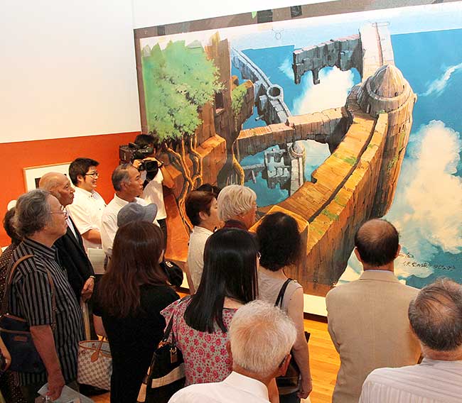 高岡市美術館で開催中の「日本のアニメーション美術の創造者 山本二三(にぞう)展」に合わせ、山本二三さん(埼玉)が来県し、トークショーと背景画の実演制作を行った。映画「天空の城ラピュタ」などの背景画を手掛けたアニメ美術の第一人者が、名作の制作秘話から創作への思いまで、ざっくばらんに語った。