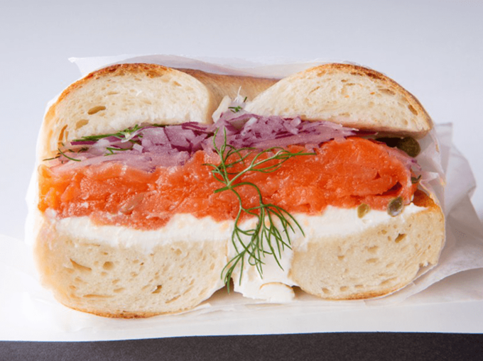 ベーグルサンド「無添加スモークサーモン&国産クリームチーズ」(2切れ700円)