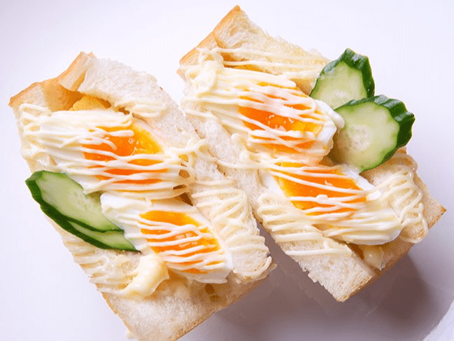 ゆで卵とだし巻き卵 トーストに詰め込む