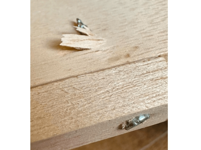 A:厚みのない木材にビスをいきなり打つのは難関です。斜めに打ってしまってビスの先端が突き出てしまう事ありますよね😵