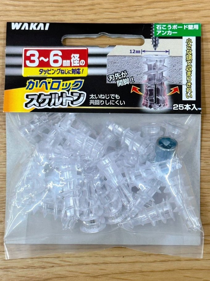 ※ボードアンカーとは石膏ボードの壁に埋め込むことで、下地が無くても安全にビスを打てるようにするもの。
