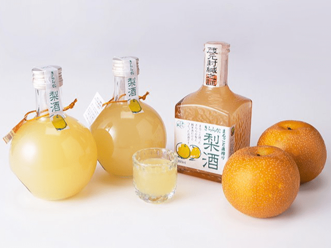 「きららか梨酒」(1本1,199円)は丸瓶と角瓶があり、どちらも300mlの飲み切りサイズ