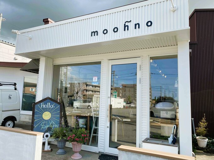白い壁に『moohno』の文字。さりげなくセンスの良さを醸し出す外観に期待が高まります。