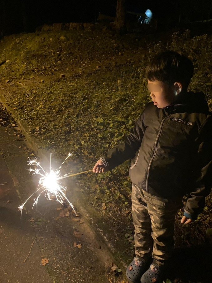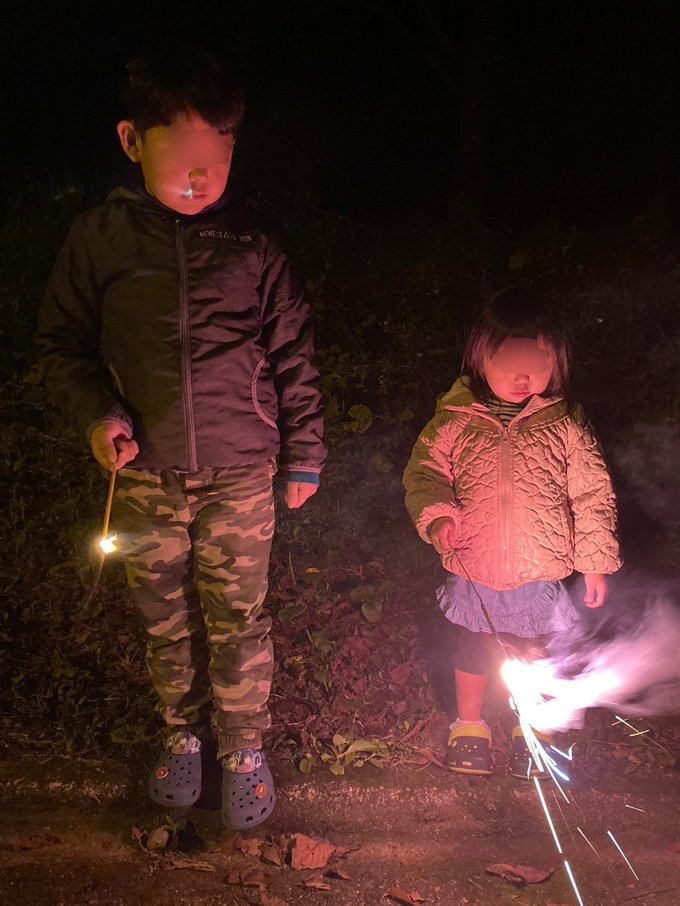 夕食後は夏にできなかった花火をやりました。寒空の下での花火は夏とはまた違った感じがあり、澄んだ空気の中で一段と綺麗でした。