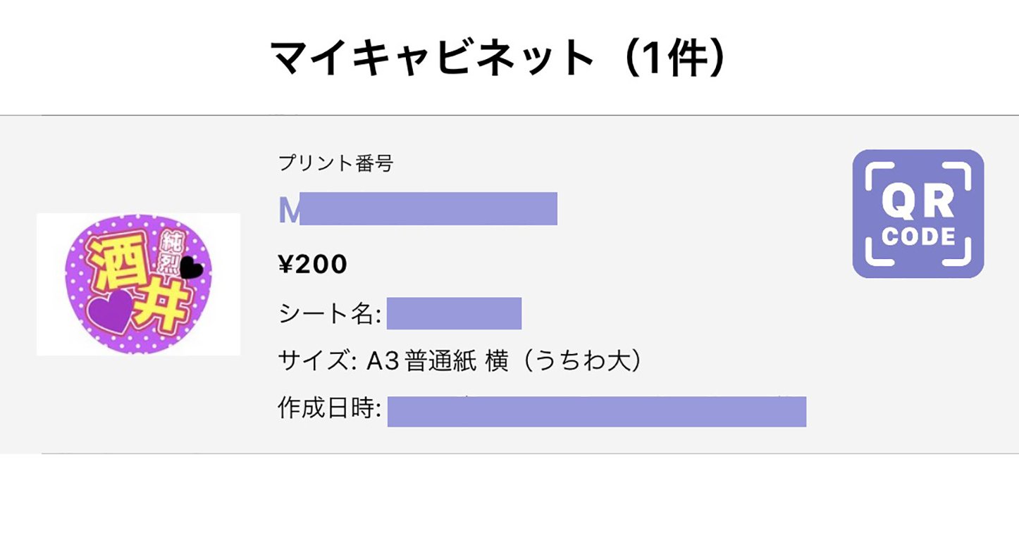 ④ 保存するとマイキャビネットにプリント番号やQRコードが保存されます。