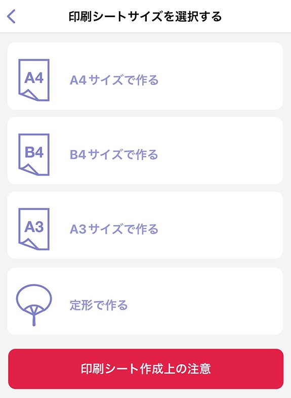 応援うちわの場合は「定型で作る」→「うちわ大 A3よこ」を選択。※普通のうちわで作る場合は「定型で作る」→「うちわ標準 A4よこ」を選びます。