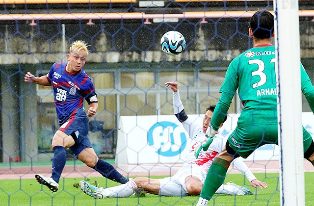 試合は富山がペースを握ったかに見えたが、一瞬の隙を突かれた。前半42分、最終ラインから中盤への不用意なパスを狙われ、技ありのロングシュートを決められた。気持ちを切り替えたはずの後半、立ち上がりに追加点を献上した。