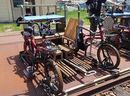 レールの上を自転車に乗って走行しながら、森の中や古い街並みを楽しめます(元レポーター・楠さん)