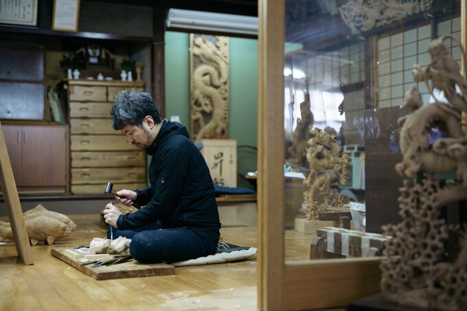 井波に戻ってきた当時、兄弟子だけでなく井波彫刻のコミュニティーの中で温かく迎え入れてもらいました。井波彫刻は個人プレーだけではありません。世代間を越えて日頃からコミュニケーションを交わし、連携して作品づくりを行うこともよくあります。いいものをつくりあげる上で、井波彫刻がコミュニティーとして成り立っていることはとても大切なことです。