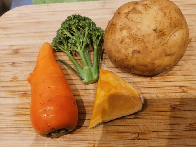 ジャガイモ、ニンジン、ブロッコリー、カボチャ。