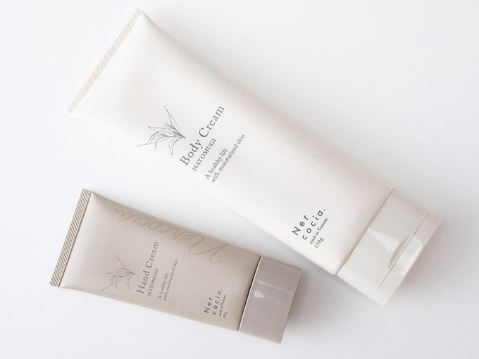 「ハトムギハンドクリーム」(1,650円、手前)と「ハトムギボディクリーム」(2,200円)は冬のギフトにぴったり