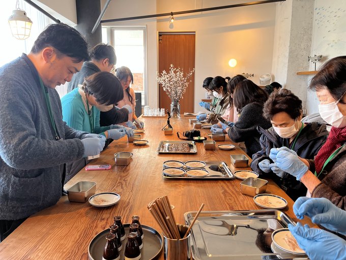 参加者はまず射水市の「みなとキッチン」へ。「富山オタクことちゃん」の愛称で知られる徳田琴絵さんの進行のもとオリエンテーションに臨みました。参加者は「ハンぎょボールが楽しみ。昨晩は枕を抱えて練習した」「ローカルプレイヤーからたくさん話を聞きたい」「富山県出身の友人よりも富山のことに詳しくなりたい」などツアーへの意気込みを語りました。